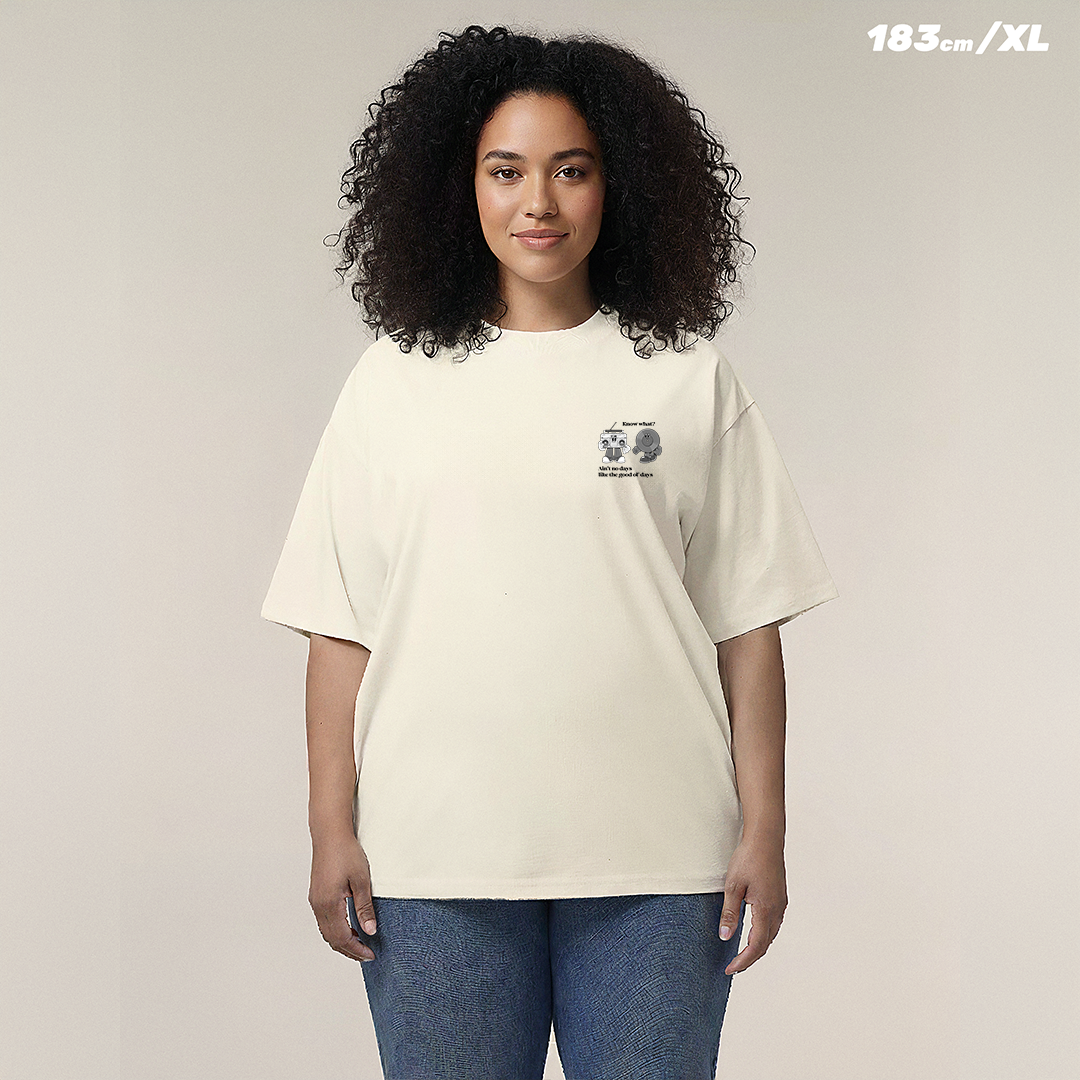 Careful! This tee has an oversized fit. For example, a man who is 185 cm tall would typically wear a size M. If you are a big man, consider choosing size L. For women, someone around 165 cm tall would usually wear size XS, though XS may also fit women up to 175 cm. Read the size guide!